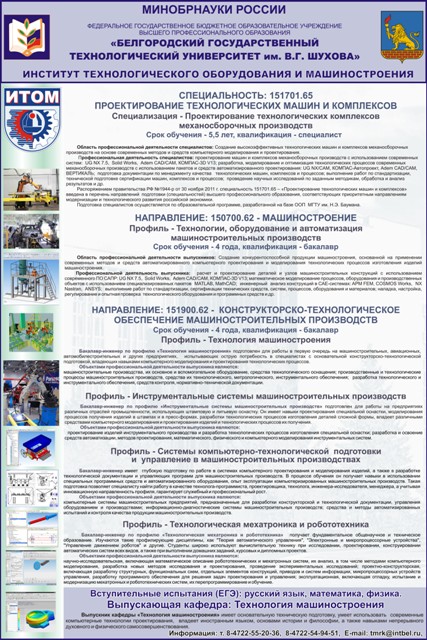Кафедра Технологии машиностроения приглашает выпускников школ, колледжей, гимназий на общеиститутское мероприятие - "День открытых дверей", которое проводится Институтом технологического оборудования и машиностроения (ИТОМ) и состоится 14 апреля 2013 г. в БГТУ им. В.Г. Шухова.